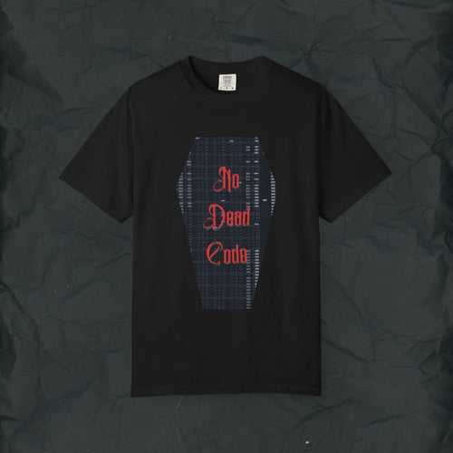 No Dead Code Programmer Shirt, Gothic Coding T-Shirt, Punch Card Coffin Design Tee